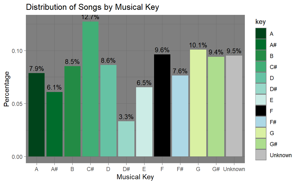 This section is dedicated to a data analysis of the Spotify Songs Album data. This dataset provides details of 903 music tracks and their performance across various platforms. It includes information like track name, artist(s), release date, and presence in popular playlists and charts on platforms like Spotify, Apple Music, Deezer, and Shazam. Additionally, it features music related variables such as BPM, key, mode, danceability, valence, energy, acousticness, instrumentalness, and liveness and speechiness, which offer insights into the musical characteristics and appeal of each track. With this data, my goal is to question the relationship of a songs musical key between spotifys charts/playlists and general release date.